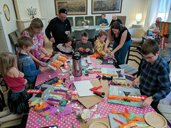 Pustni Äas je prišel letos na Finsko malo z zamudo. Kurenti prinašajo pomlad in ker je na Finsko pomlad pošteno zamujala smo ji pomagali z delavnico na temo kurentov. Na letošnjem prvem sreÄanju Slovencev na Finskem smo na delavnici za otroke izdelovali maske kurentov. Pri izdelavi smo si pomagali s papirnatimi vreÄkami, ki smo jih okrasili, da so bili podobo kurenta. Model je pripravil Dušan, delavnico pa je vodila Andreja. Katja je pripravila zanimivo in pouÄno predstavitev praznovanja pusta v Sloveniji. Na Finskem se pust ne praznuje tako kot v Sloveniji, zato je bila za mnoge otroke predstavitev nekaj novega. Na koncu je vsem prav lepo zadišalo, saj sta nam Katja in Mojca spekli Äisto sveĹže flancate. Gostja sreÄanja je bila ga. Milena Kajzer iz slovenskega veleposlaništva v Kopenhagnu.